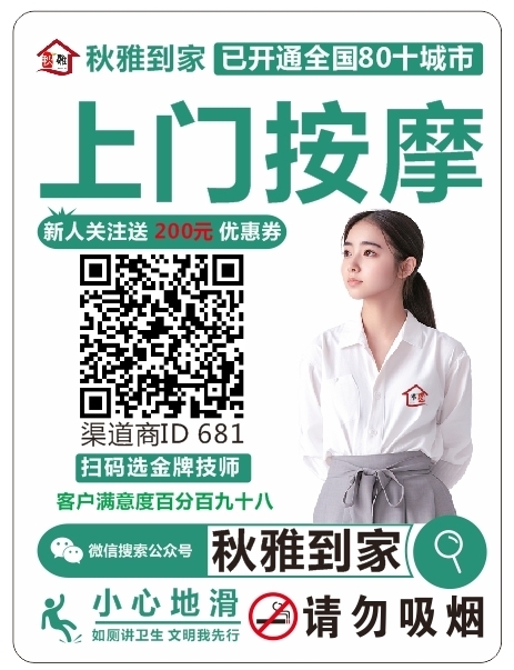 秋雅到家上门按摩技师多多,同城的朋友还在等什么。快来扫码预约体验吧!全...