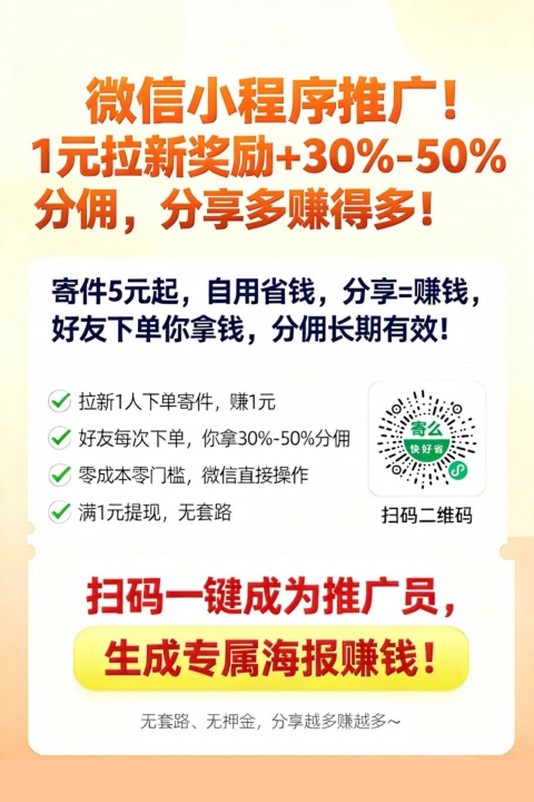 首重5元起寄快递,分享下单得30-50%分佣