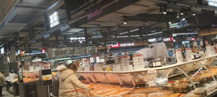 重庆佳惠超市五江路店凉菜,烤鸭柜台招导购与及片鸭师...